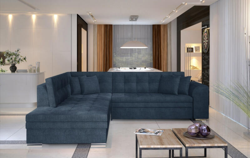 Pieretta egy többfunkciós, mégis elegáns és tágas, klasszikus stílusban készült sarokkanapé. Kiváló minőségű bútor, széles ülőfelülettel, hullámrugó és T30-as habszivacs kombinációjából kialakított töltettel. A 260 x 205 x 80 cm-es Pieretta mögött nem csak a kényelem, hanem a jól elaludt éjszakák is. kivételesen nagy alvófelületen keresztül. A delfines összecsukható típus lehetővé teszi a kanapé egyszerű és könnyed szétnyitását, és egy tágas, 200 x 126 cm-es ágy funkciójával gazdagítja. Az érzékelhető kényelem maximális hatását többek között a puha, ferde ülés is befolyásolja. kontúros kartámasz, nagy párnák a készletben, valamint krómozott ovális lábak és kontúros háttámla elegáns foltvarrással. Ha kíváncsi, hogy mit kínál még a Pieretta sarokkanapé - bátran válasszon bútort az Eltaptól.