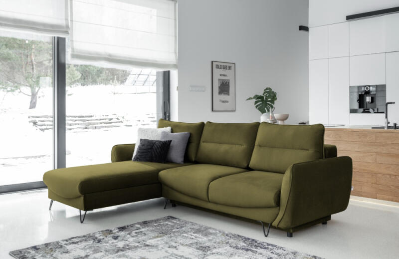 Silva sarokkanapé időtlen dizájnnal rendelkezik, fekete, jellegzetes acél lábai pedig stílust és modern eleganciát adnak. Az L-alak természetesen barátságos ülőalkalmatossággá teszi. Minden bizonnyal a nappaliban, ahol a Silva sarok áll majd, bőven lesz hely a kényelmes beszélgetéshez és egy kellemes délután eltöltéséhez. A sarokülőgarnitúra hosszú élettartamú lesz a nagy rugalmasságú HR habbal töltött ülőpárnáknak köszönhetően, amely jó testtartást biztosít, és felállás után gyorsan visszanyeri eredeti formáját. A bútor ülőkéjében használt hullámrugó felelős azért, hogy az ülés ellenálló legyen az összeomlással szemben. A bútor méretei - 276 x 201 x 100 cm - sokféle összeállítást tesznek lehetővé. További előny, hogy a Silva sarokkanapé számos színben és szövetben elérhető. A bútor könnyen átalakítható összecsukható ággyá, melynek méretei: 240 x 123 cm. Ezen kívül a Silva előnye a sarok puffába rejtett tágas ágyneműtartó is. A kibontás is rendkívül egyszerű dolog, hiszen az itt használt DL automata egy egyszerű és intuitív mechanizmus. Kínálunk hozzáillő fotelt, puffot, kanapét és Silva szettet is a sarokba.