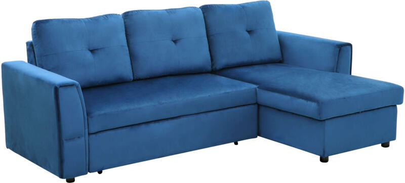 HOMCOM 3 személyes sarokkanapé ággyá alakítható, tárolóval - Kék Ez a modern HOMCOM sarokkanapé tökéletes választás kis terekbe is, hiszen kényelmes ülőgarnitúraként és tágas ágyként is funkcionál. A praktikus tárolórekesz segítségével rendet tarthatsz a nappaliban, a puha, bársonyhatású poliészter kárpit pedig kellemes tapintású és könnyen tisztítható. Főbb jellemzők: ?️ 3 személyes kanapé: Kényelmesen elfér rajta az egész család vagy a baráti társaság. ?️ Ággyá alakítható: Vendégéjszakák esetén gyorsan és egyszerűen ággyá alakítható. ? Tárolórekesz: Praktikus rekesz az ülőfelület alatt, ahol takarókat, párnát vagy más holmikat tárolhatsz. ? Jobbra-balra szerelhető: A sarokrész elhelyezése tetszés szerint változtatható, így tökéletesen illeszkedik a lakás elrendezéséhez. ? 3 hátpárna: Kényelmes támaszt nyújt a hátnak. ? Bársonyhatású poliészter kárpit: Puha, légáteresztő és könnyen tisztítható. ? Méretek: Teljes méretek: 232L x 141D x 85Acm. (A pontos méreteket lásd a termék specifikációban. ) ? Teherbírás: 150 kg Élvezd a kényelmet és a sokoldalúságot!